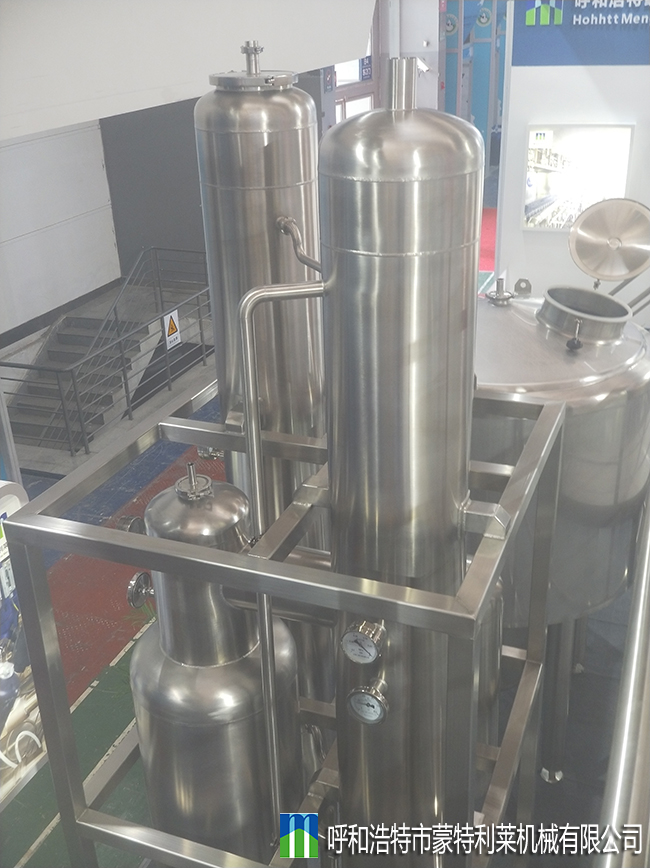 本設備主要由降膜加熱器 、分離室、冷凝器  、水環(huán)式真空泵、雙機械密封衛生泵、連接管道及電氣控制系統等組成。